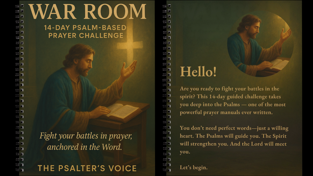 Step into the War Room for 14 days of powerful prayer, healing, and spiritual growth. Each day features a handpicked Psalm, a prayer for breakthrough, and an actionable step to apply God's Word in your life.